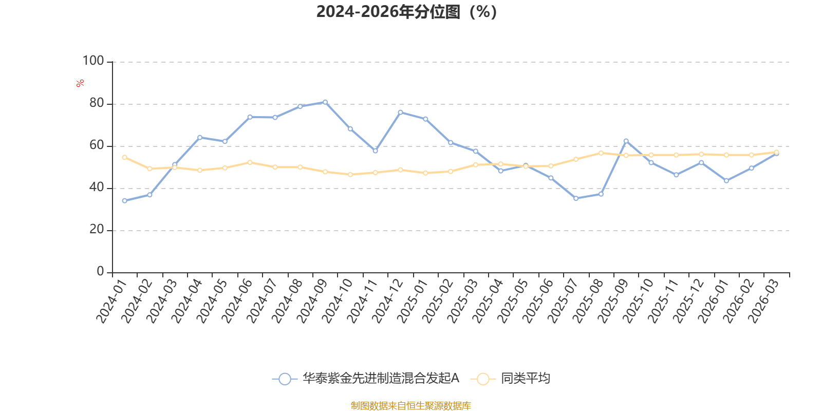 通过所选区间该基金净值增长率分位图,可以观察该基金与同类基金业绩比较情况。图为坐标原点到区间内某时点的净值增长率在同类基金中的分位数。