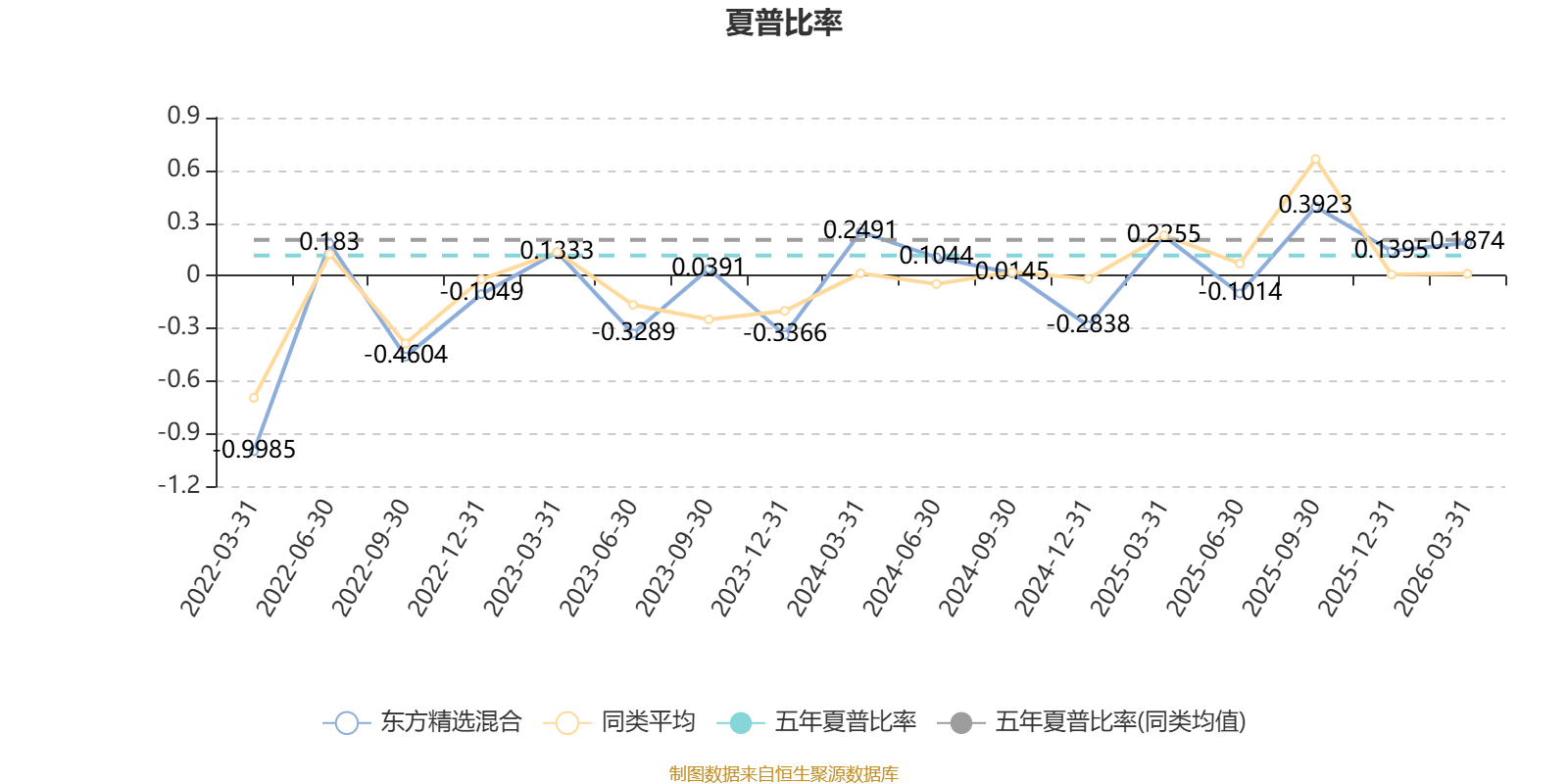 截至3月31日,基金近三年夏普比率为0.6575,位于同类可比基金38/124。
