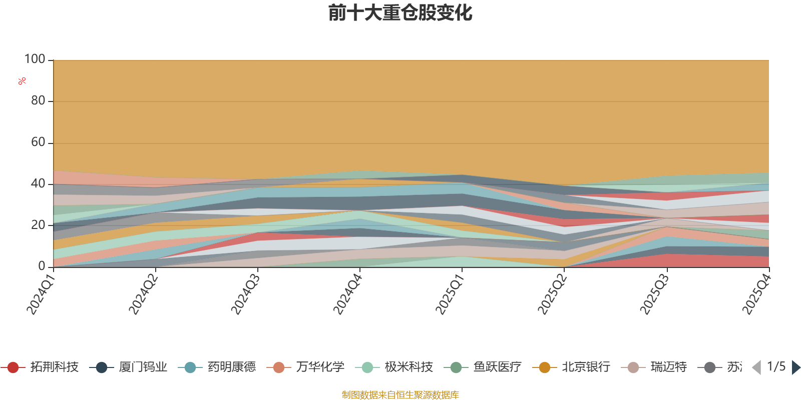 截至2025年末,基金十大重仓股分别是中国铝业、金风科技、拓荆科技、新和成、厦门钨业、中孚实业、牧原股份、龙佰集团、豪迈科技、万华化学。