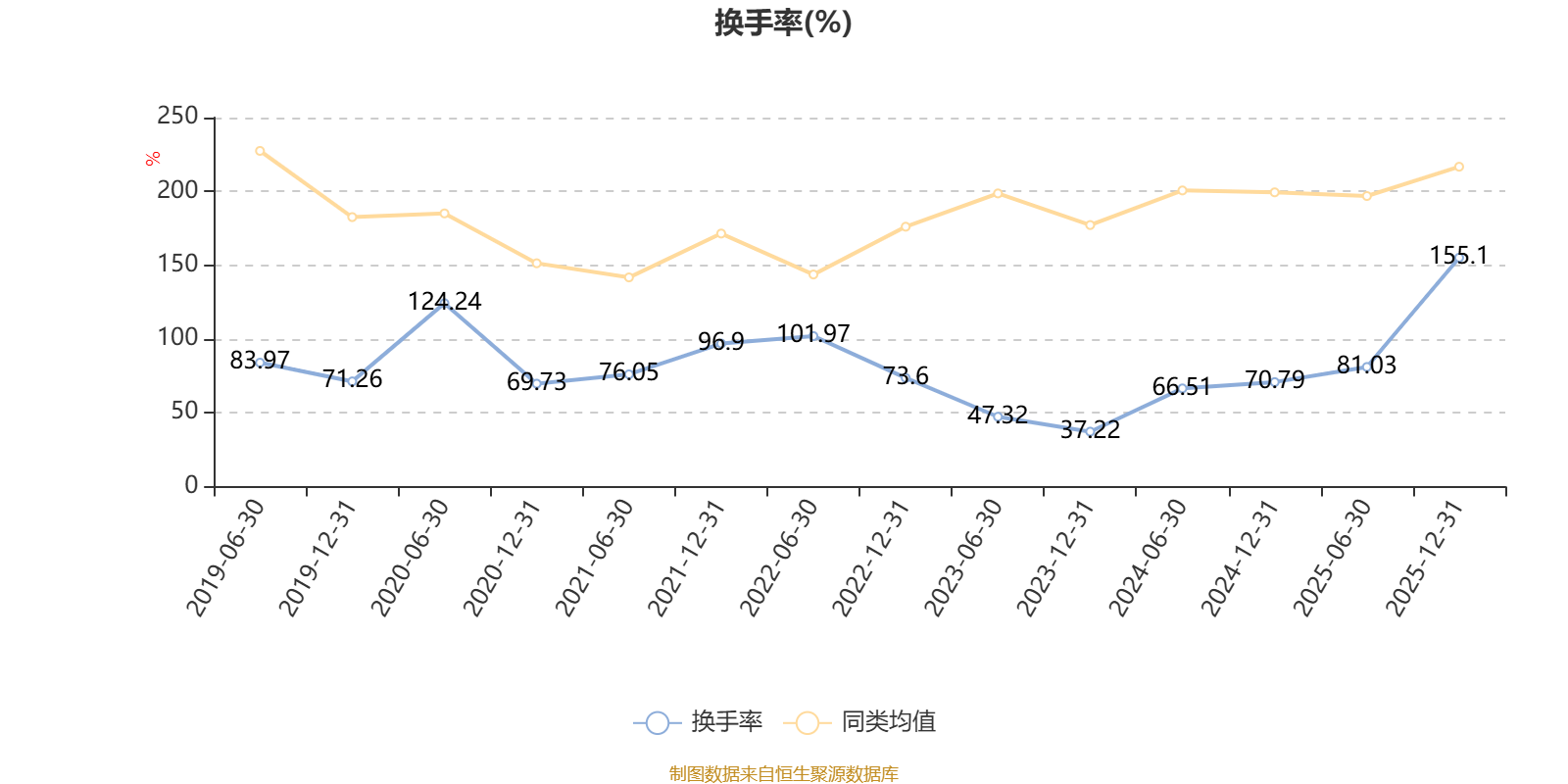 截至2025年12月31日,基金最近一年换手率约237.69%,持续低于同类均值。