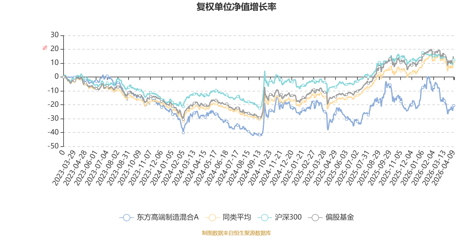 截至4月9日,东方高端制造混合A近三个月复权单位净值增长率为-15.41%,位于同类可比基金659/689;近半年复权单位净值增长率为-13.78%,位于同类可比基金638/689;近一年复权单位净值增长率为25.59%,位于同类可比基金449/685;近三年复权单位净值增长率为-20.15%,位于同类可比基金375/417。