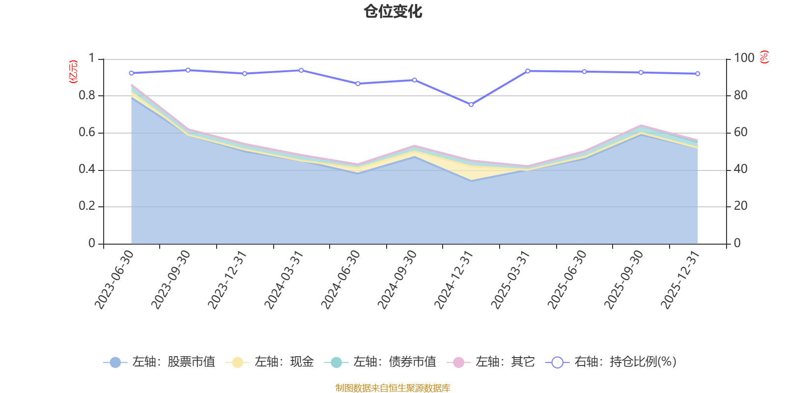 据定期报告数据统计,成立以来平均股票仓位为90.39%,同类平均为84.04%。2023年三季度末基金达到93.93%的最高仓位,2024年末最低,为75.36%。