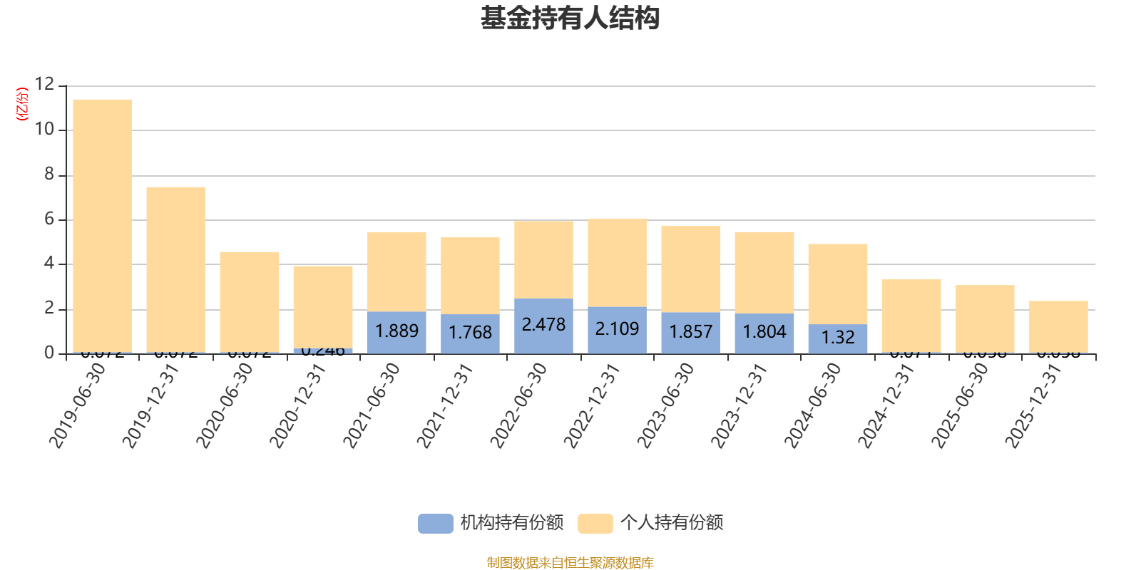 截至2025年12月31日,基金持有人共计1.72万户,合计持有2.36亿份。其中管理人员工持有2.24万份,占比0.01%,机构持有份额占比2.45%,个人投资者占比97.55%。
