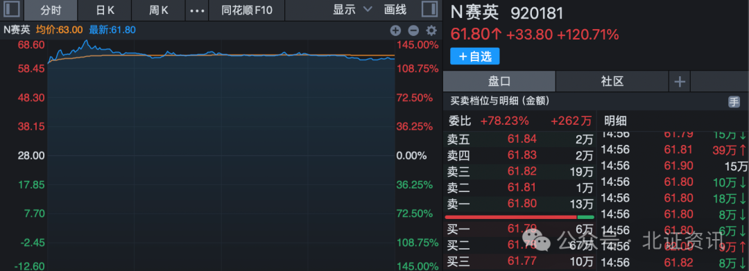 4月10日,江阴市赛英电子股份有限公司(股票简称:赛英电子;股票代码:920181)在北京证券交易所正式挂牌上市,成为北交所“功率半导体部件第一股”。截至4月10日收盘,赛英电子股价收报61.8元/股,涨幅达到120.71%,最新总市值26.7亿元。