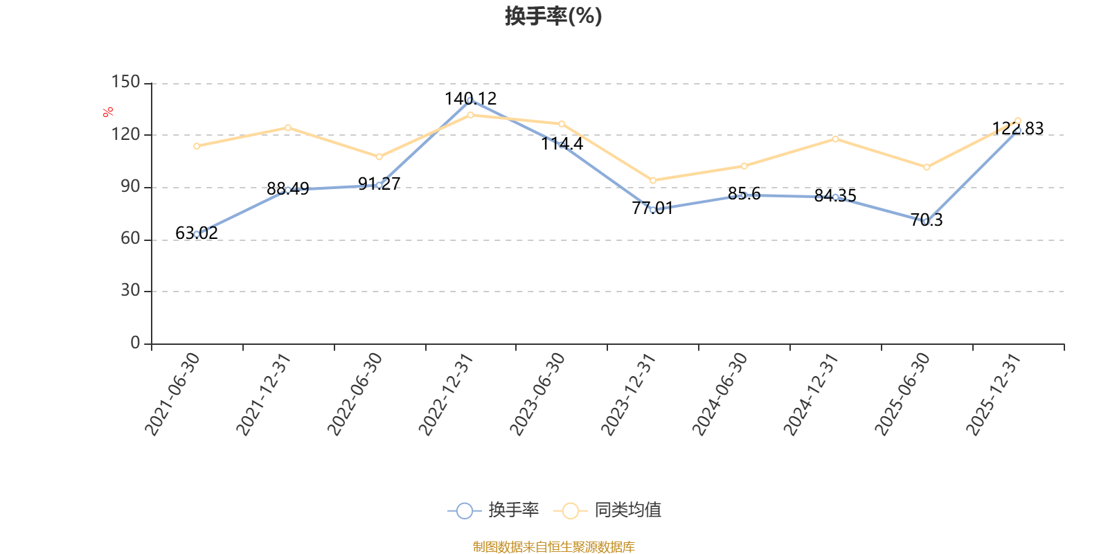 截至2025年12月31日,基金最近一年换手率约192.04%,持续3年低于同类均值。