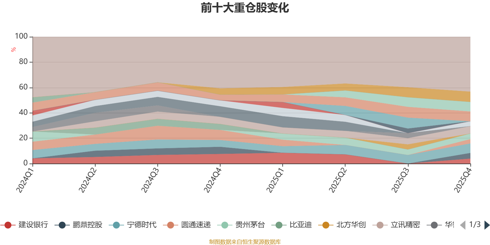 该基金持股集中度较高。截至2025年末,基金十大重仓股分别是徐工机械、紫金矿业、宁德时代、中国平安、立讯精密、鹏鼎控股、贵州茅台、建设银行、招商银行、圆通速递。