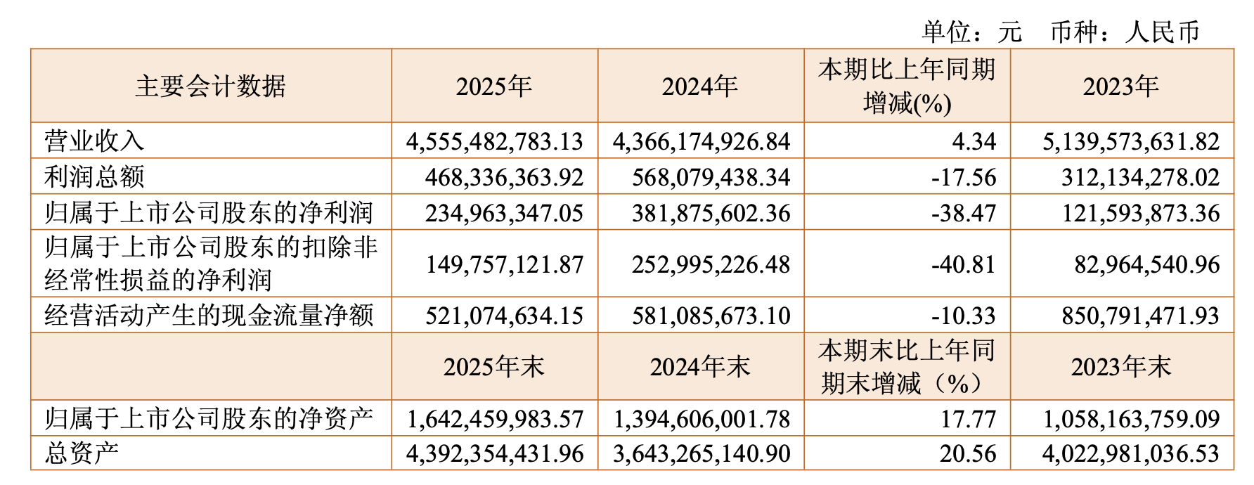 报告期,公司实施完成了资金总额为5044.51万元(不含相关交易费用)的回购股份注销工作,间接实现现金分红;公司拟向全体股东每10股派发现金红利0.23元(含税),以报告期末总股本13.05亿股计算,合计拟派发现金红利3000.48万元(含税);公司2025年度以现金分红和回购注销金额合计8044.99万元,占该年度归属于上市公司股东净利润的比例34.24%。