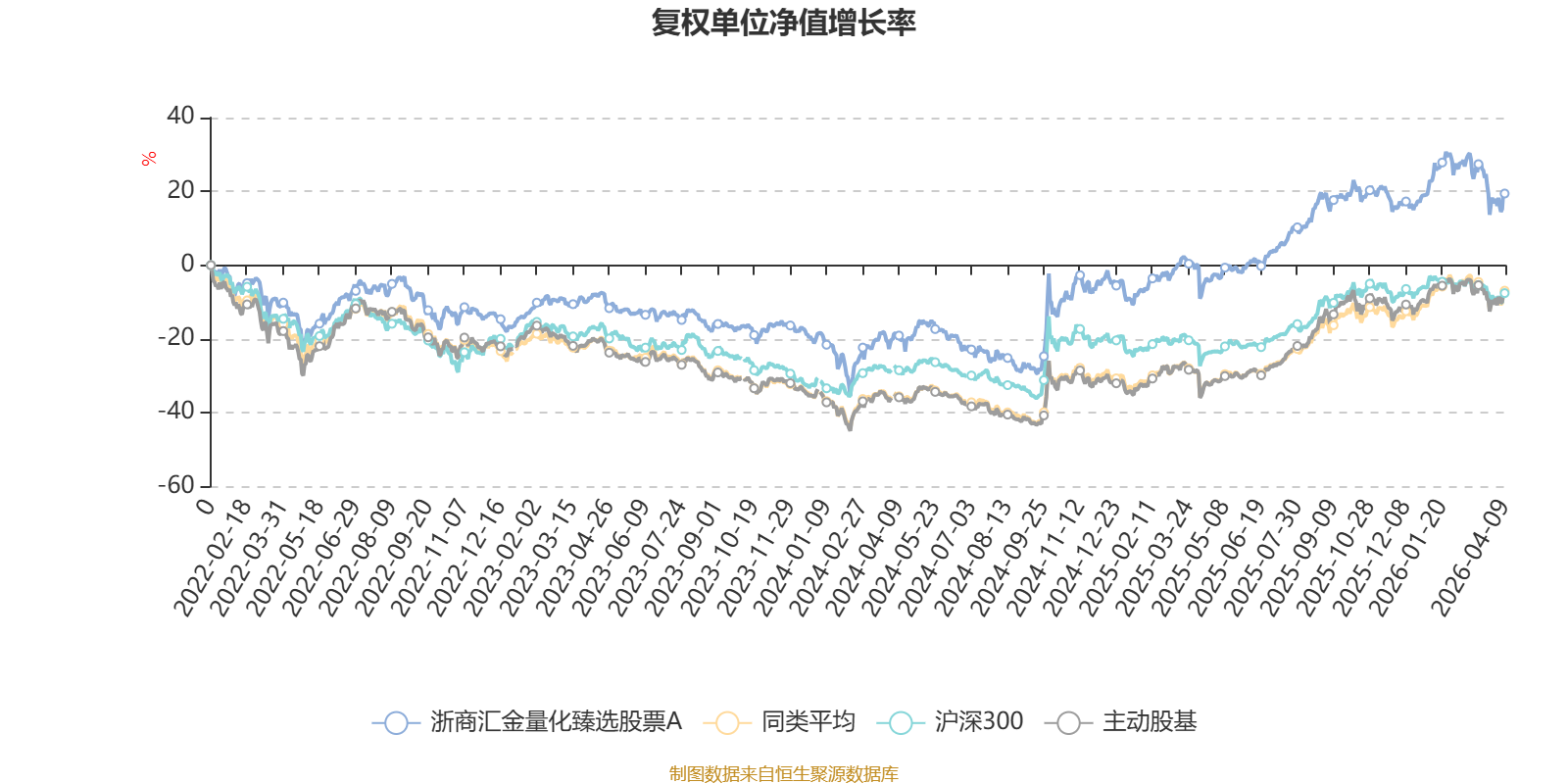 截至4月9日,浙商汇金量化臻选股票A近三个月复权单位净值增长率为-4.16%,位于同类可比基金94/121;近半年复权单位净值增长率为-2.93%,位于同类可比基金93/121;近一年复权单位净值增长率为28.06%,位于同类可比基金73/120;近三年复权单位净值增长率为29.45%,位于同类可比基金28/90。