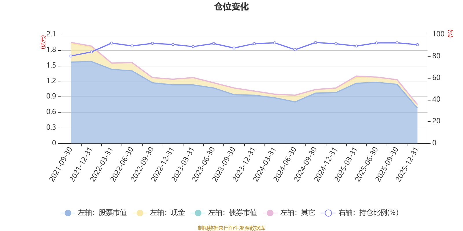 据定期报告数据统计,近三年平均股票仓位为90.72%,同类平均为88.34%。2024年三季度末基金达到92.76%的最高仓位,2021年三季度末最低,为80.37%。