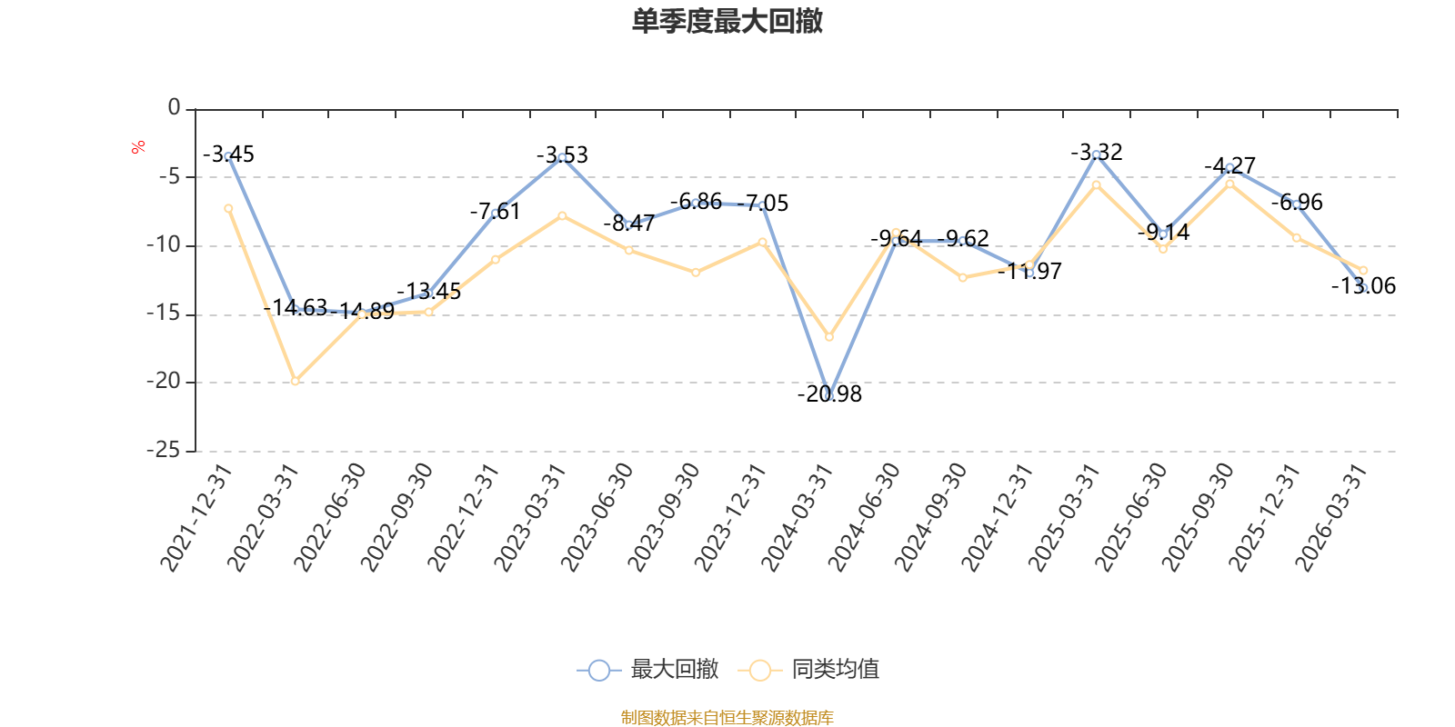 截至4月9日,基金近三年最大回撤为30.22%,同类可比基金排名30/86。单季度最大回撤出现在2024年一季度,为20.98%。