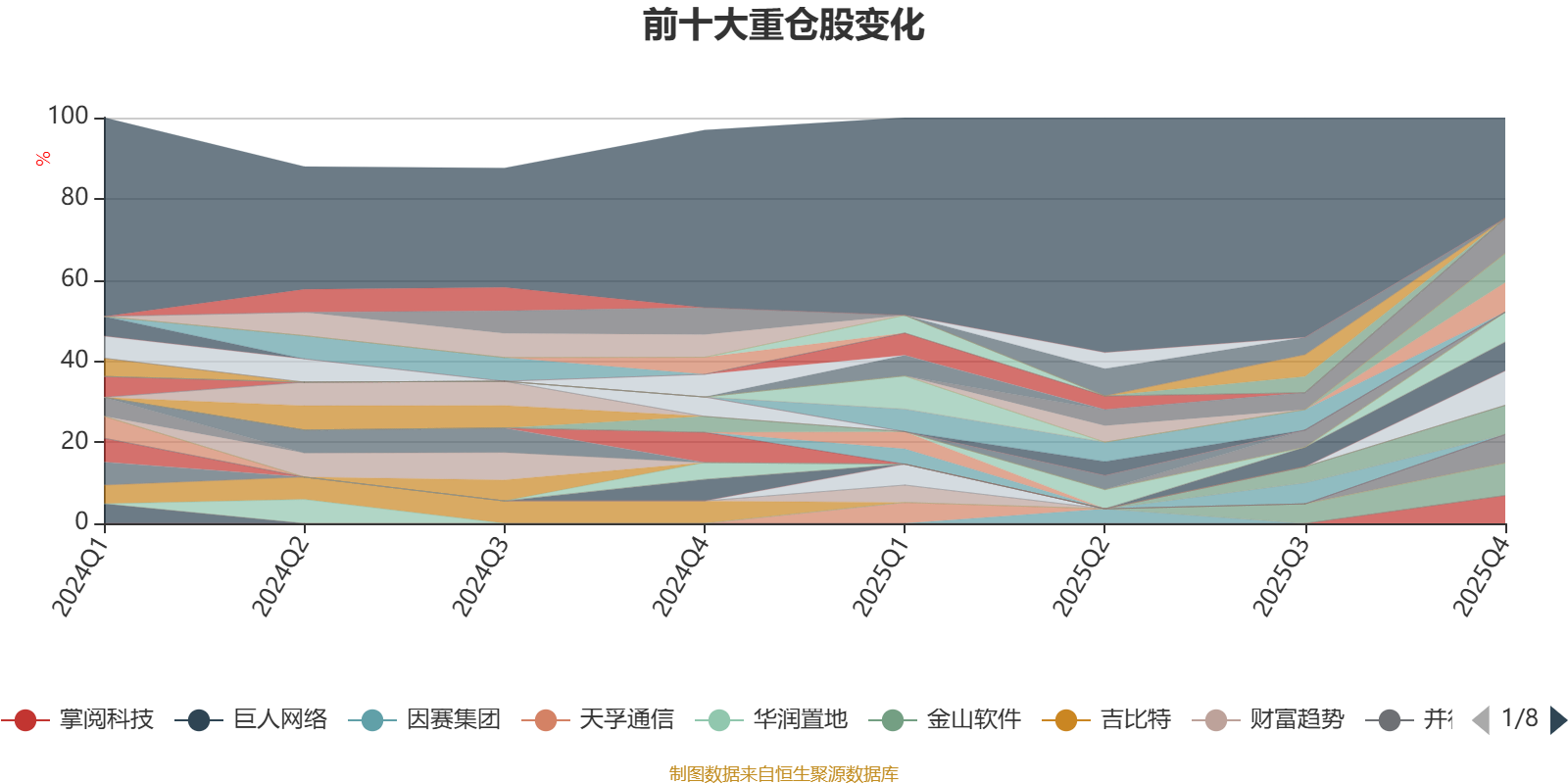 截至2025年末,基金十大重仓股分别是金山云、中文在线、金山软件、中国软件国际、多点数智、艾融软件、万兴科技、迈富时、并行科技、掌阅科技。