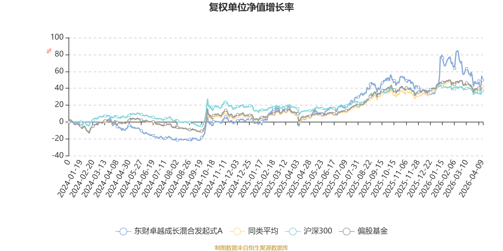 截至4月9日,东财卓越成长混合发起式A近三个月复权单位净值增长率为-3.69%,位于同类可比基金465/689;近半年复权单位净值增长率为-3.07%,位于同类可比基金483/689;近一年复权单位净值增长率为49.18%,位于同类可比基金224/685。
