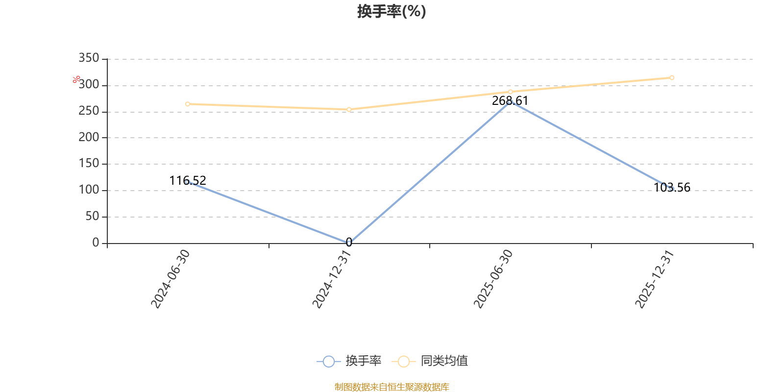 截至2025年12月31日,基金最近一年换手率约330.81%,持续低于同类均值。