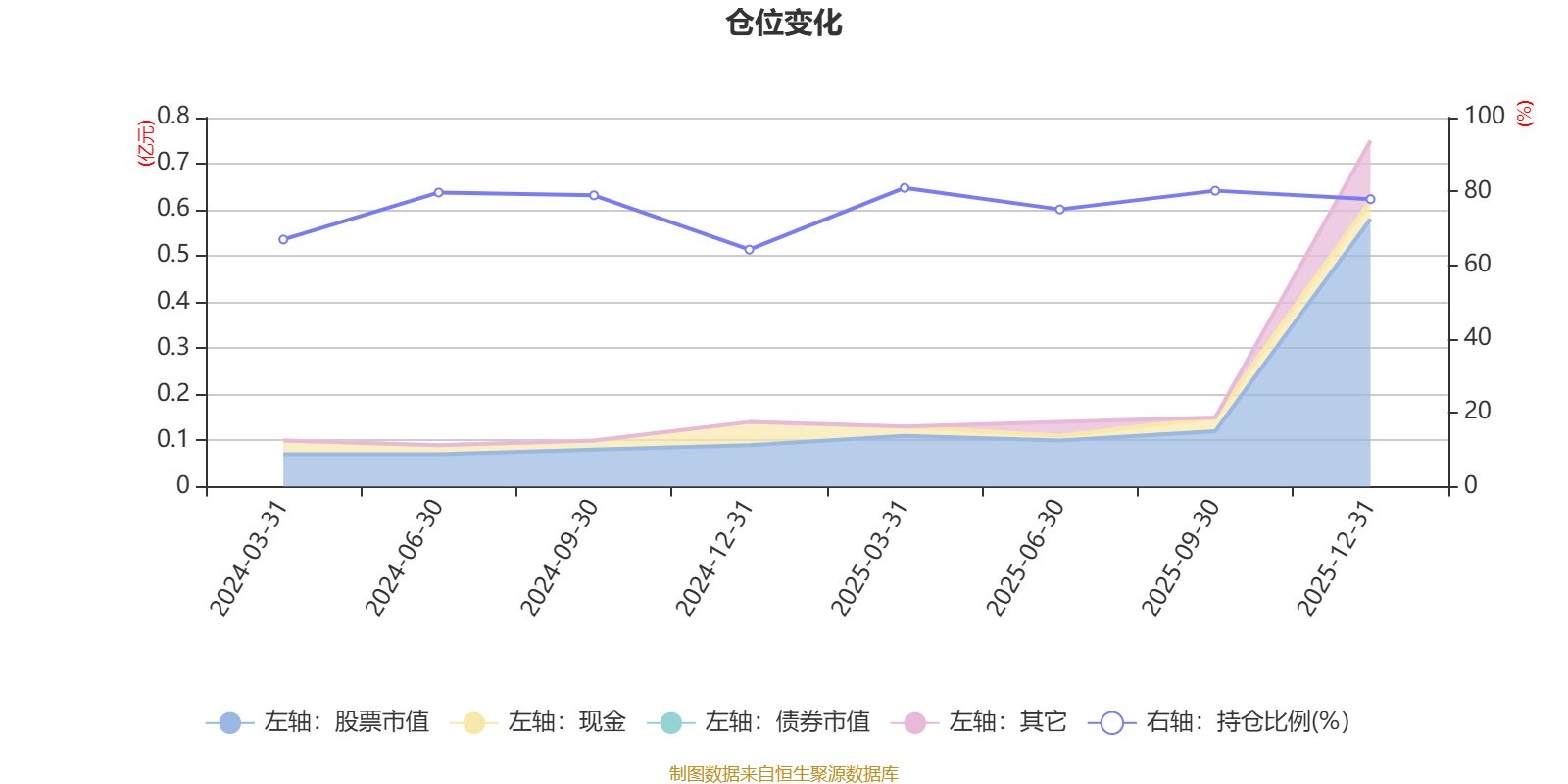 据定期报告数据统计,成立以来平均股票仓位为75.5%,同类平均为84.04%。2025年一季度末基金达到80.96%的最高仓位,2024年末最低,为64.22%。