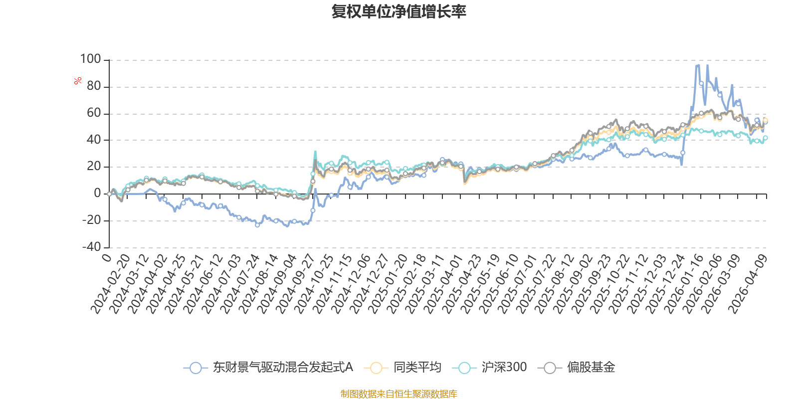 截至4月9日,东财景气驱动混合发起式A近三个月复权单位净值增长率为-14.64%,位于同类可比基金653/689;近半年复权单位净值增长率为12.49%,位于同类可比基金113/689;近一年复权单位净值增长率为32.47%,位于同类可比基金383/685。
