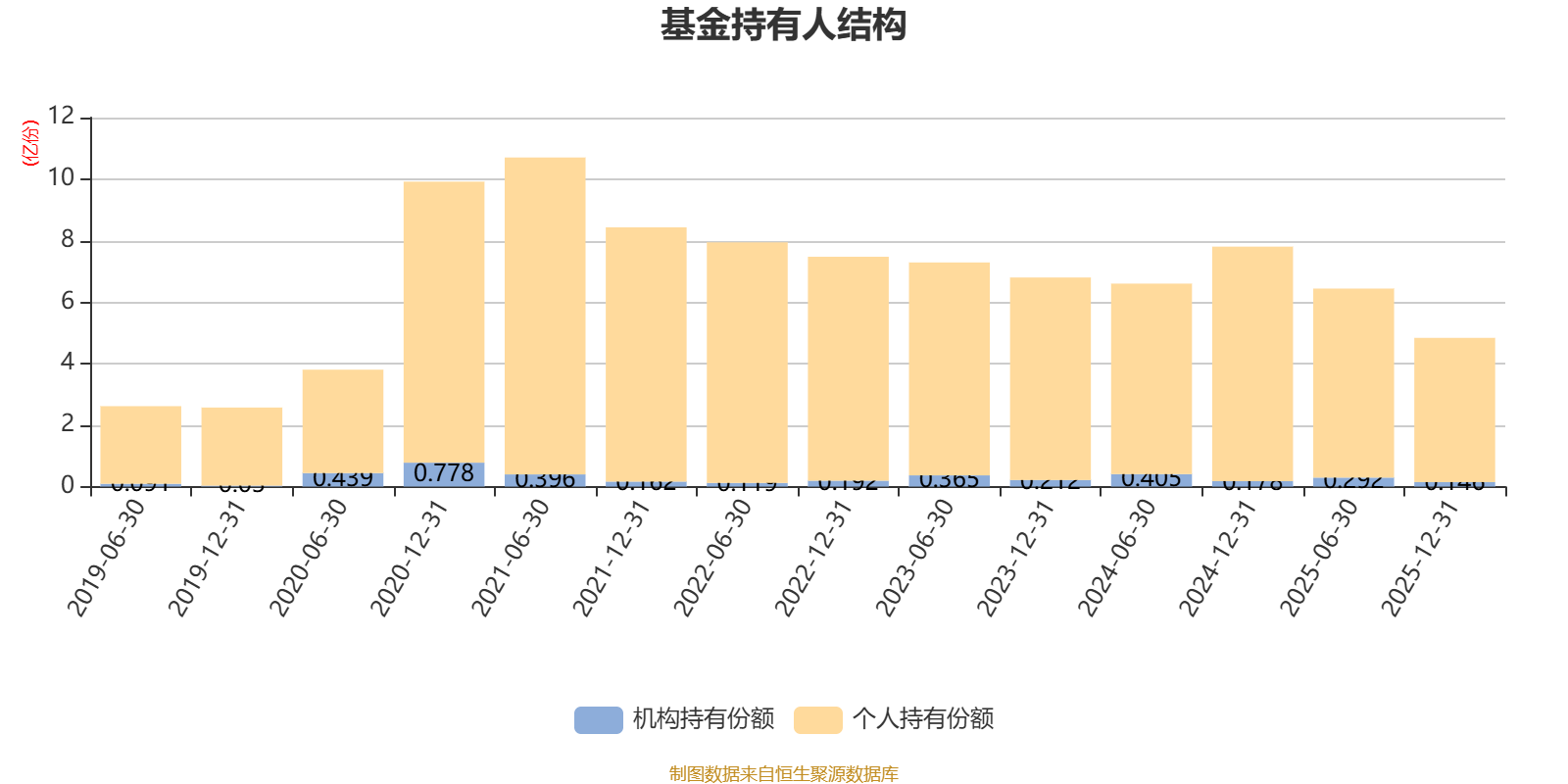 截至2025年12月31日,基金持有人共计11.13万户,合计持有4.84亿份。其中管理人员工持有11.96万份,占比0.02%,机构持有份额占比3.02%,个人投资者占比96.98%。