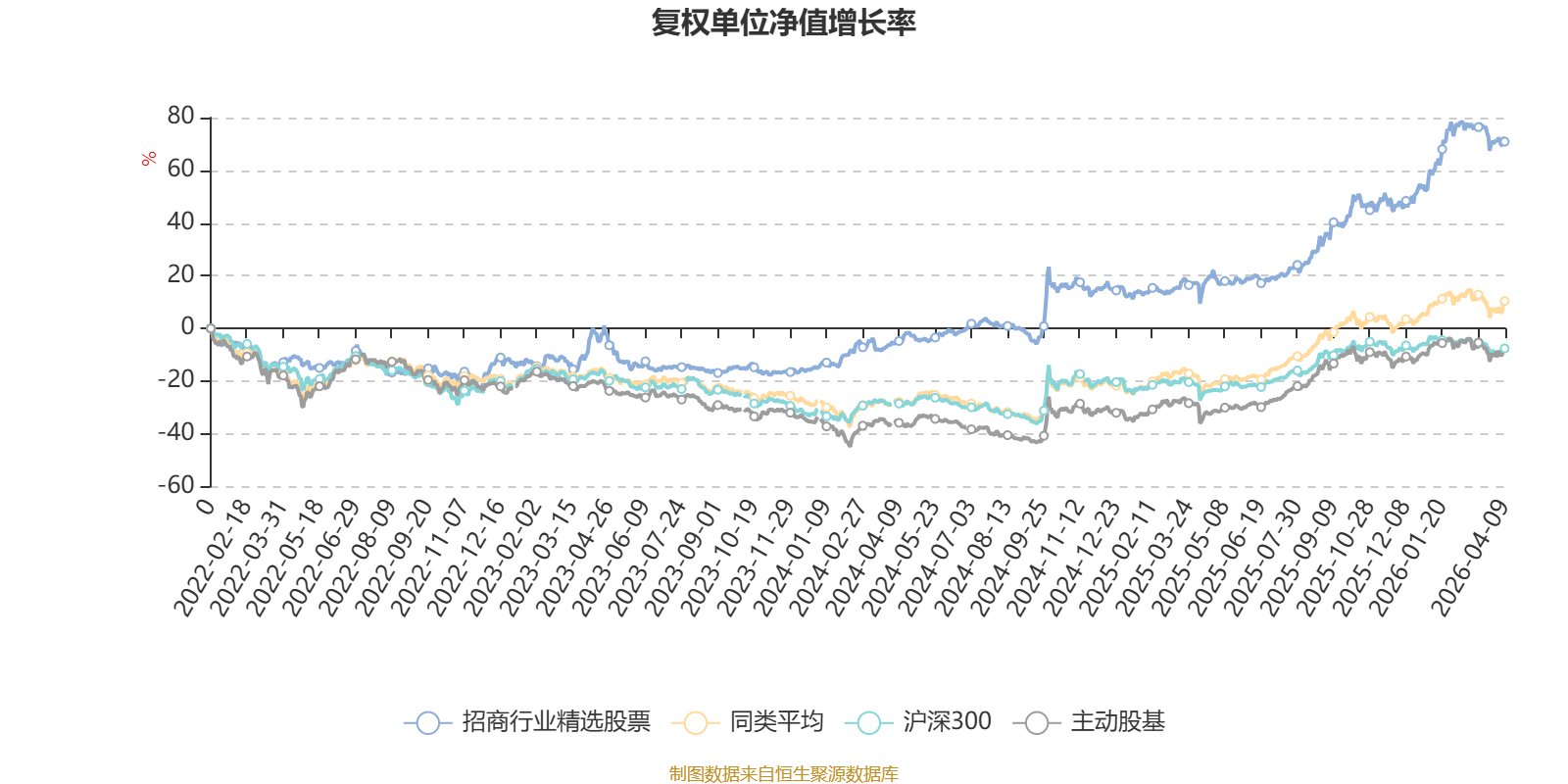 截至4月9日,招商行业精选股票近三个月复权单位净值增长率为6.92%,位于同类可比基金6/58;近半年复权单位净值增长率为13.34%,位于同类可比基金6/58;近一年复权单位净值增长率为49.42%,位于同类可比基金21/57;近三年复权单位净值增长率为70.88%,位于同类可比基金3/57。