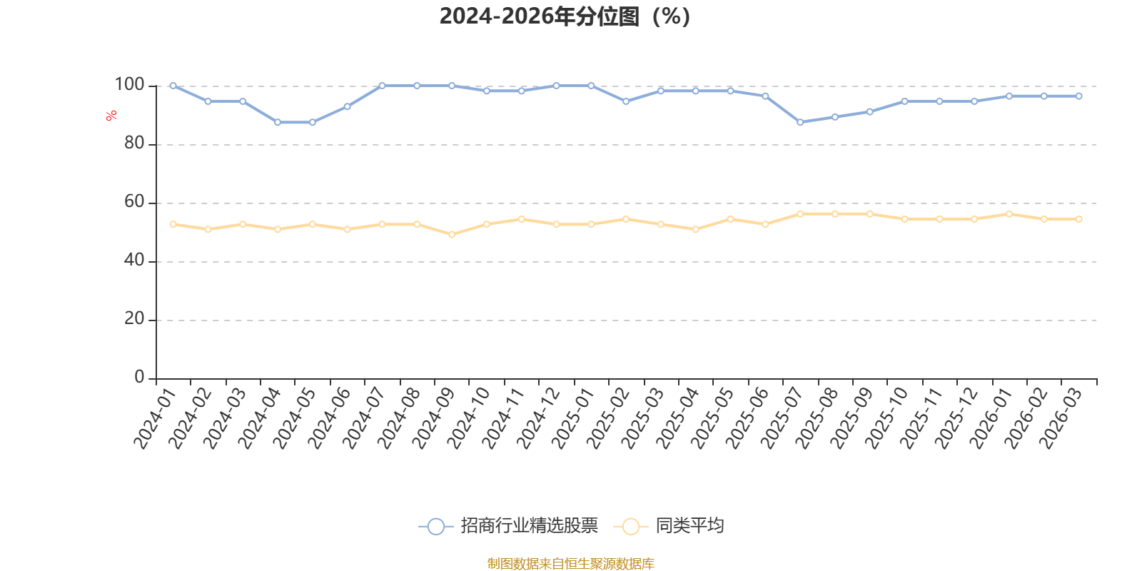 通过所选区间该基金净值增长率分位图,可以观察该基金与同类基金业绩比较情况。图为坐标原点到区间内某时点的净值增长率在同类基金中的分位数。