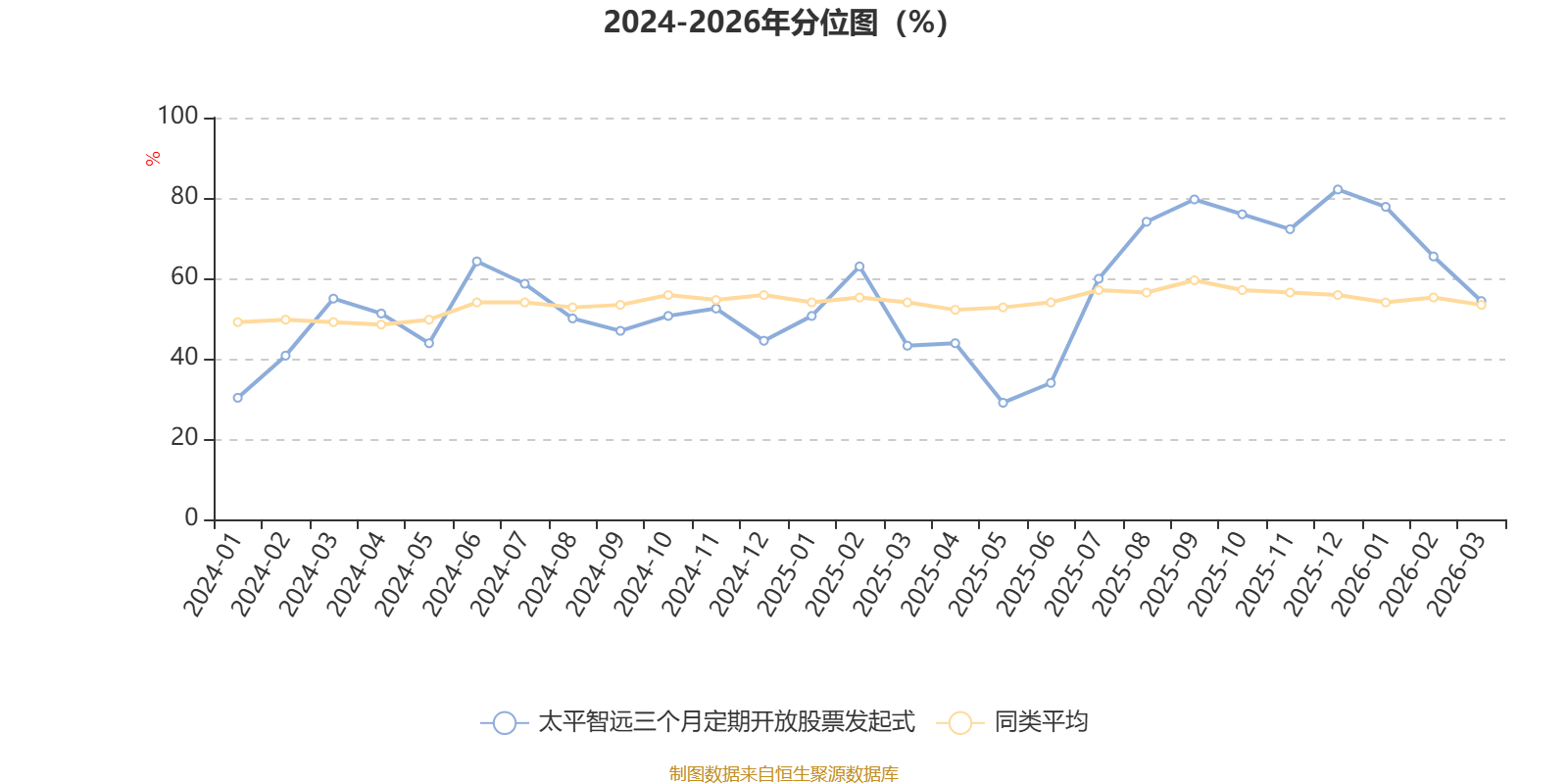 通过所选区间该基金净值增长率分位图,可以观察该基金与同类基金业绩比较情况。图为坐标原点到区间内某时点的净值增长率在同类基金中的分位数。