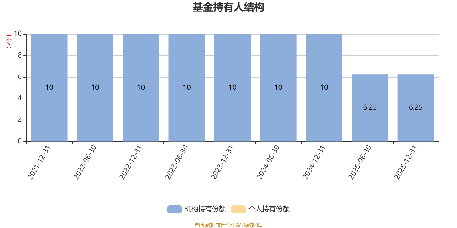 截至2025年12月31日,基金持有人共计220户,合计持有6.25亿份。机构持有份额占比100.00%,