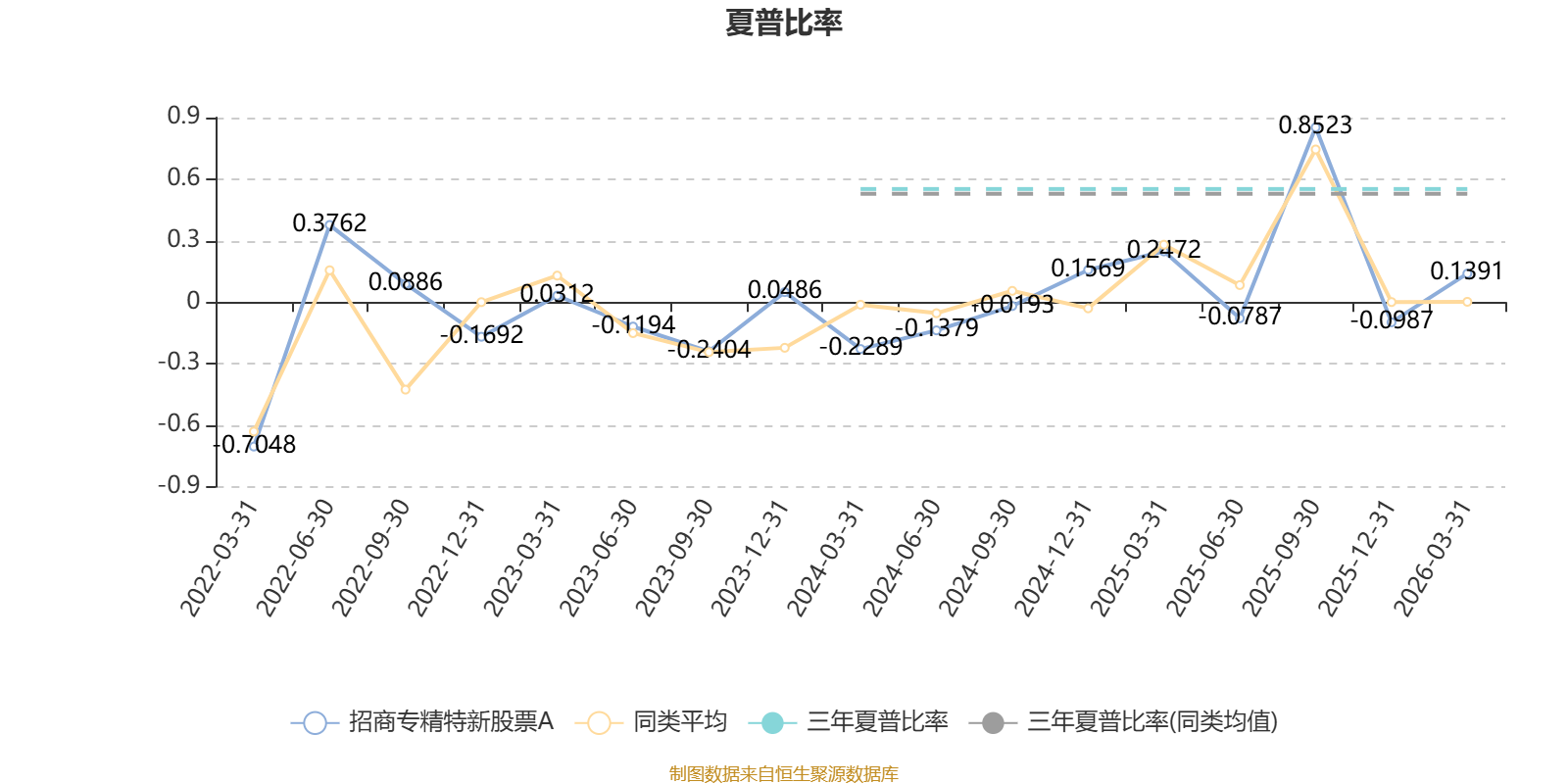 截至3月31日,基金近三年夏普比率为0.5515,位于同类可比基金85/157。