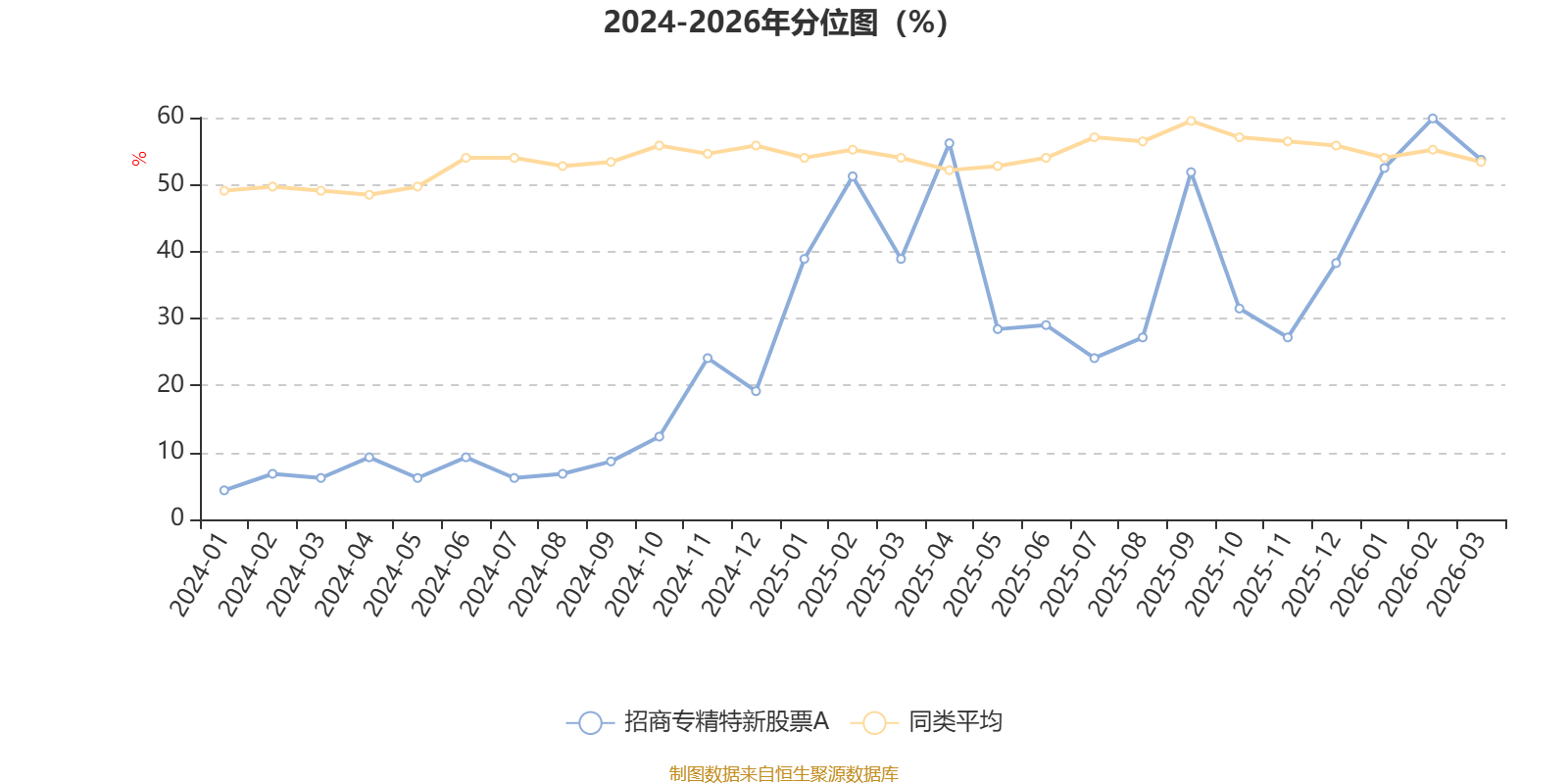 通过所选区间该基金净值增长率分位图,可以观察该基金与同类基金业绩比较情况。图为坐标原点到区间内某时点的净值增长率在同类基金中的分位数。