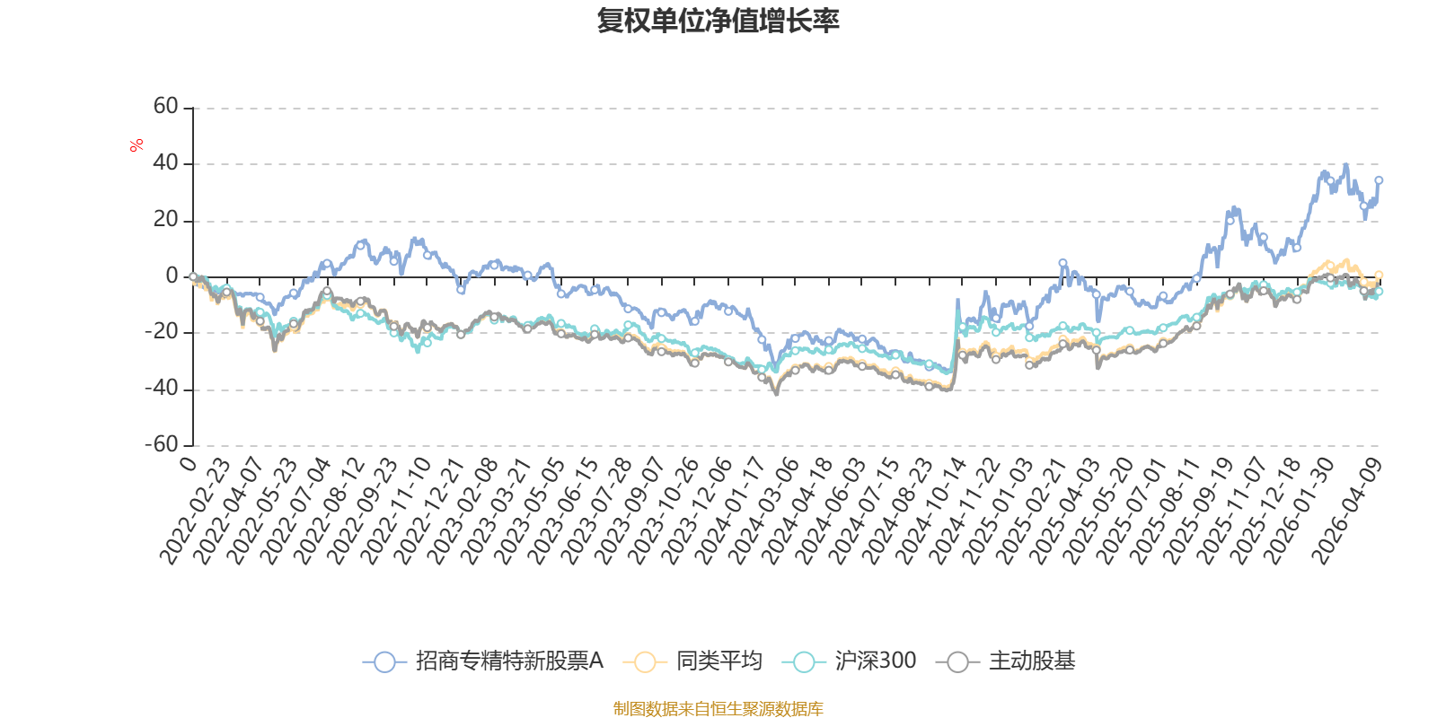 截至4月9日,招商专精特新股票A近三个月复权单位净值增长率为5.14%,位于同类可比基金18/167;近半年复权单位净值增长率为8.46%,位于同类可比基金35/167;近一年复权单位净值增长率为55.96%,位于同类可比基金45/165;近三年复权单位净值增长率为29.63%,位于同类可比基金49/157。