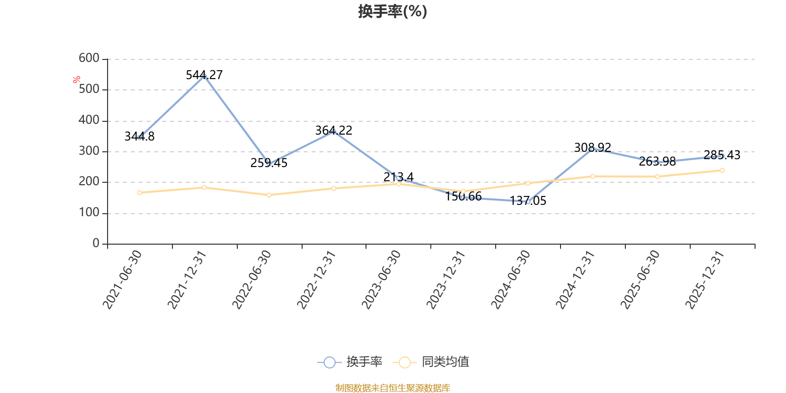 截至2025年12月31日,基金最近一年换手率约542.87%,持续1年高于同类均值。