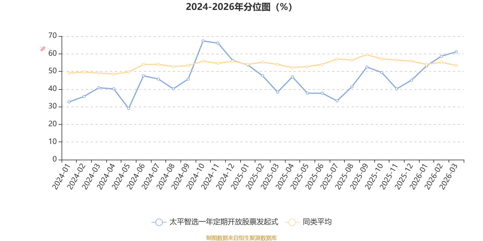 通过所选区间该基金净值增长率分位图,可以观察该基金与同类基金业绩比较情况。图为坐标原点到区间内某时点的净值增长率在同类基金中的分位数。