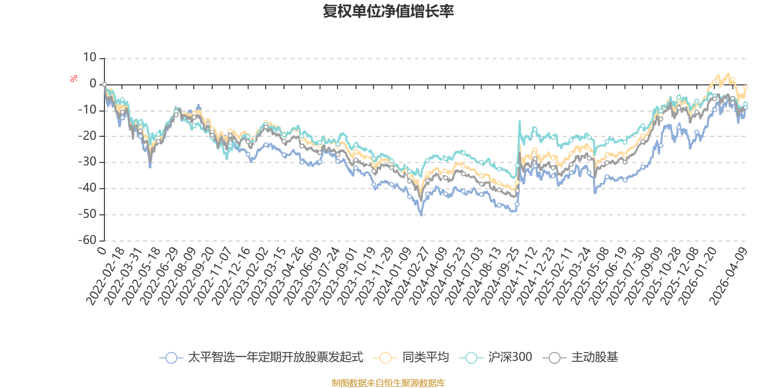 截至4月9日,太平智选一年定期开放股票发起式近三个月复权单位净值增长率为3.44%,位于同类可比基金30/167;近半年复权单位净值增长率为8.11%,位于同类可比基金36/167;近一年复权单位净值增长率为54.73%,位于同类可比基金49/165;近三年复权单位净值增长率为21.68%,位于同类可比基金73/157。