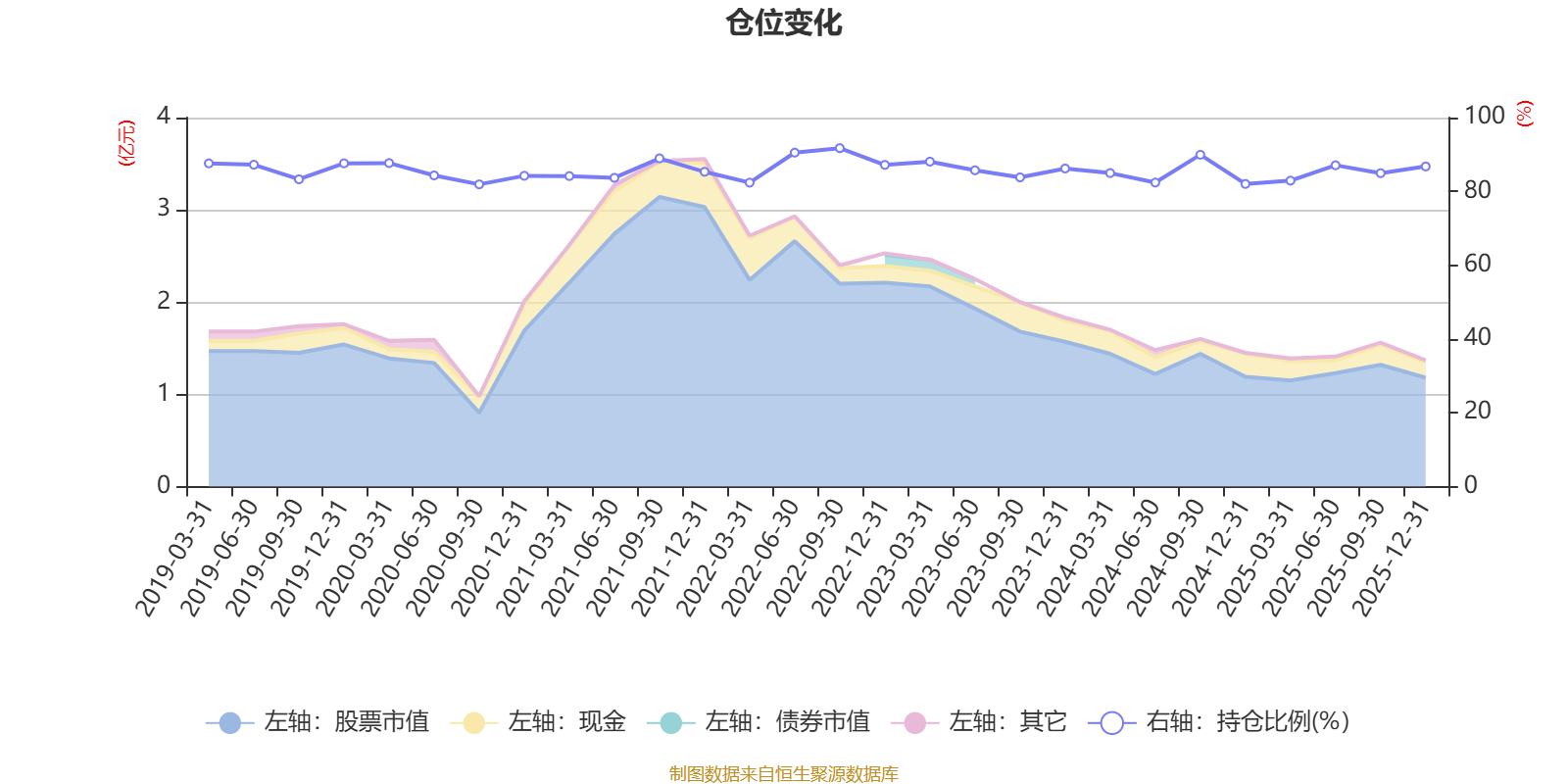 据定期报告数据统计,近三年平均股票仓位为85.4%,同类平均为88.26%。2022年三季度末基金达到91.72%的最高仓位,2020年三季度末最低,为81.9%。