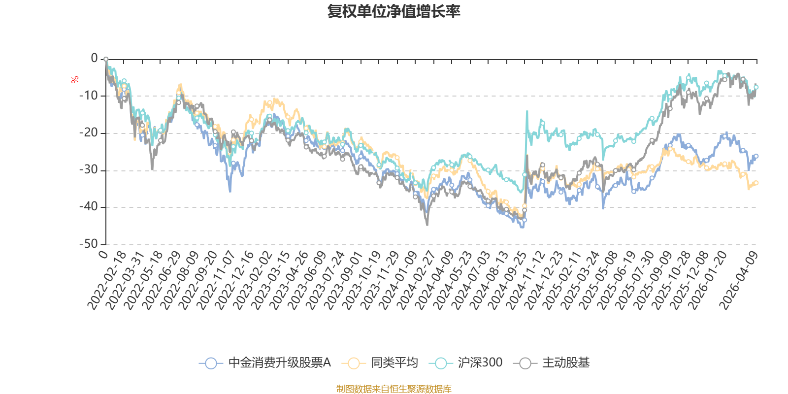 截至4月9日,中金消费升级股票A近三个月复权单位净值增长率为-5.33%,位于同类可比基金11/43;近半年复权单位净值增长率为-7.04%,位于同类可比基金9/43;近一年复权单位净值增长率为19.49%,位于同类可比基金2/43;近三年复权单位净值增长率为-9.33%,位于同类可比基金10/41。