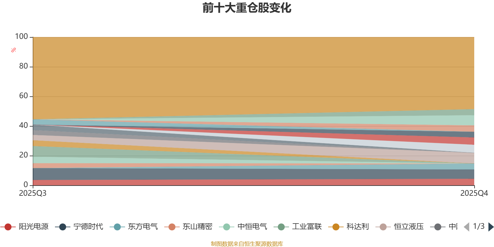 截至2025年末,基金十大重仓股分别是恒立液压、宇通客车、宁德时代、生益科技、三花智控、阳光电源、江波龙、国际复材、东方电气、新易盛。