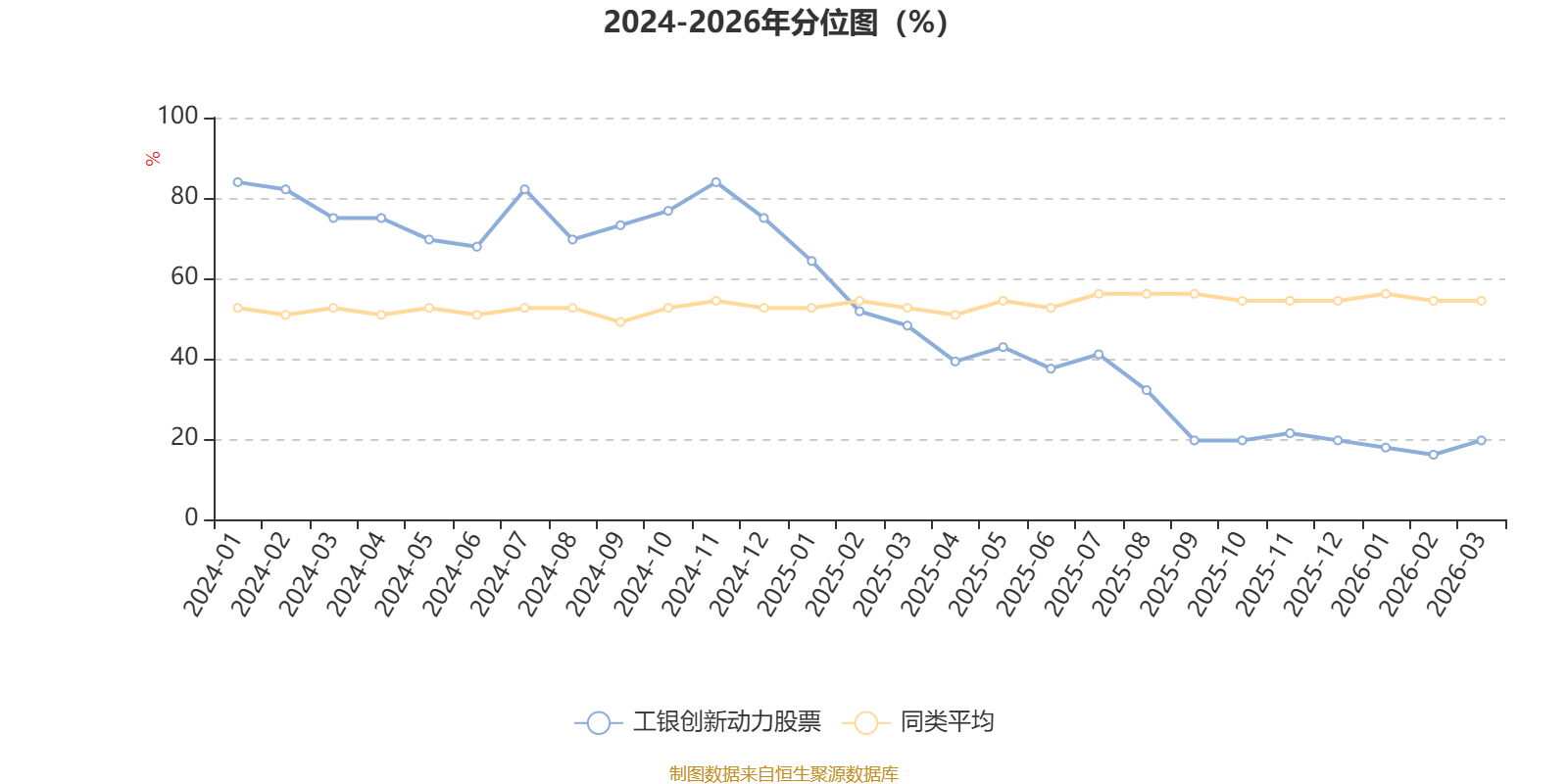 通过所选区间该基金净值增长率分位图,可以观察该基金与同类基金业绩比较情况。图为坐标原点到区间内某时点的净值增长率在同类基金中的分位数。
