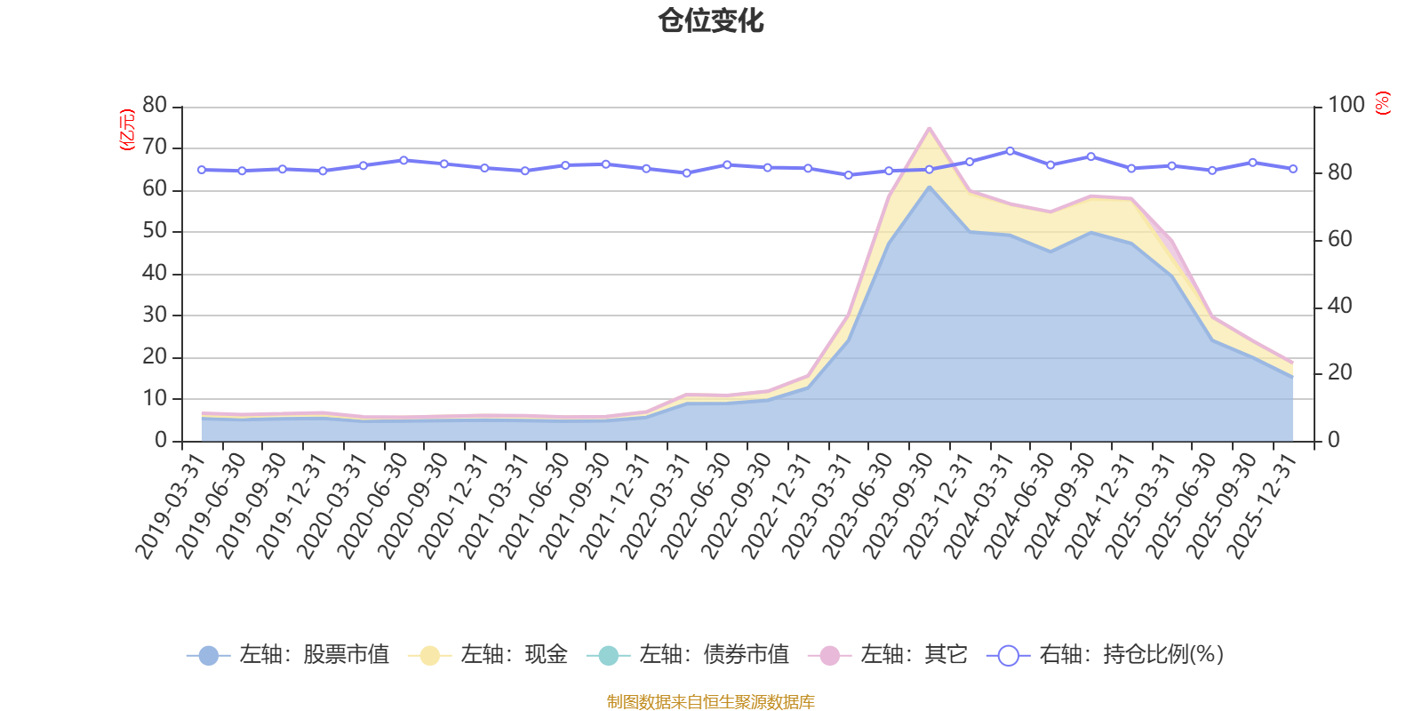 据定期报告数据统计,近三年平均股票仓位为82.42%,同类平均为88.64%。2024年一季度末基金达到86.75%的最高仓位,2023年一季度末最低,为79.55%。
