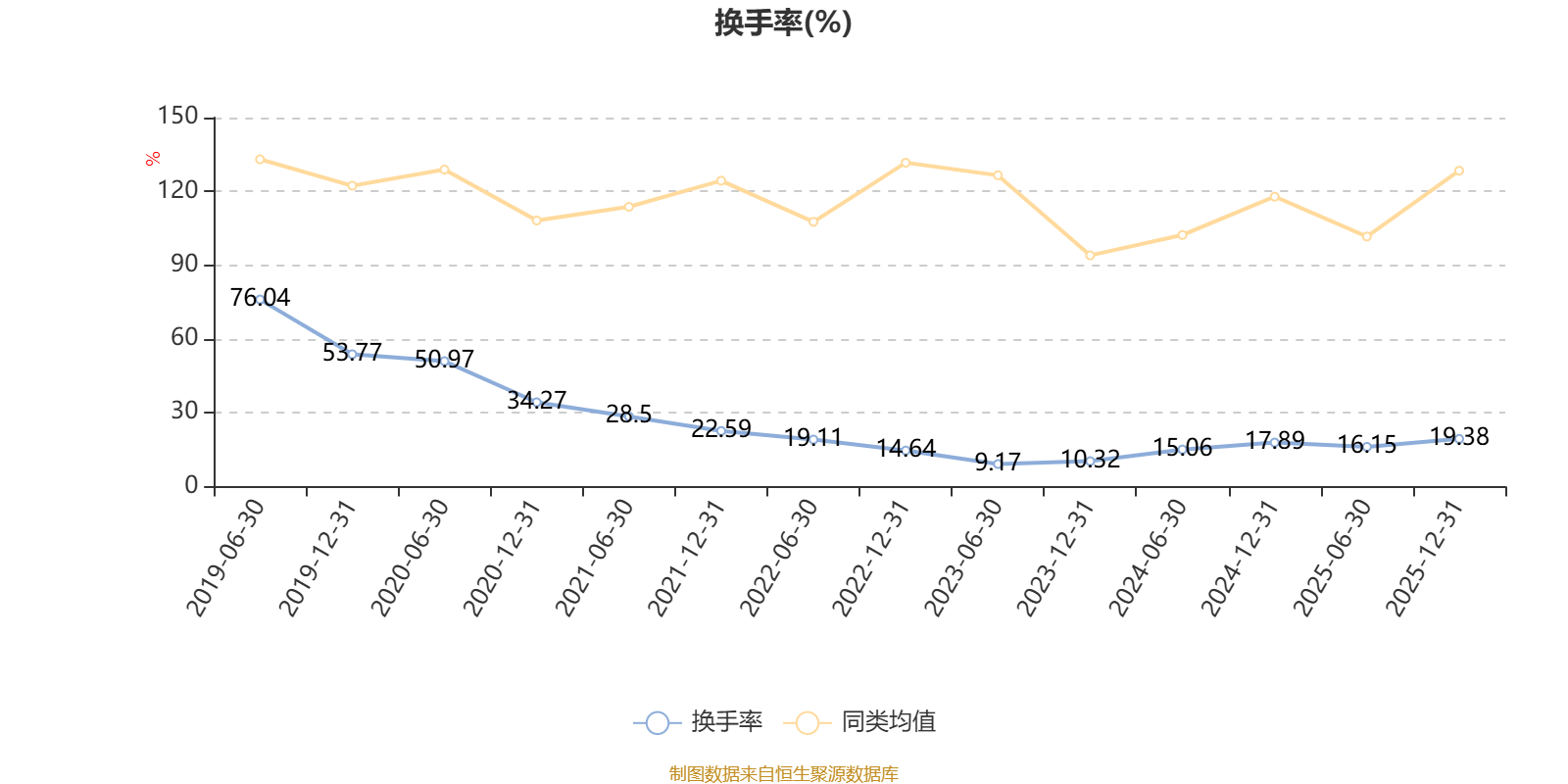 截至2025年12月31日,基金最近一年换手率约35.07%,持续低于同类均值。