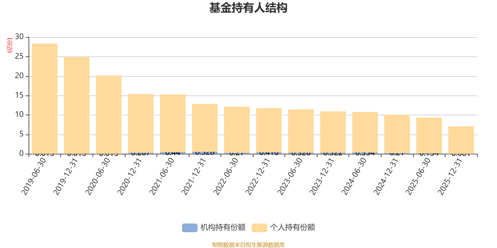 截至2025年12月31日,基金持有人共计4.9万户,合计持有7.12亿份。其中管理人员工持有39.74万份,占比0.06%,机构持有份额占比0.02%,个人投资者占比99.98%。
