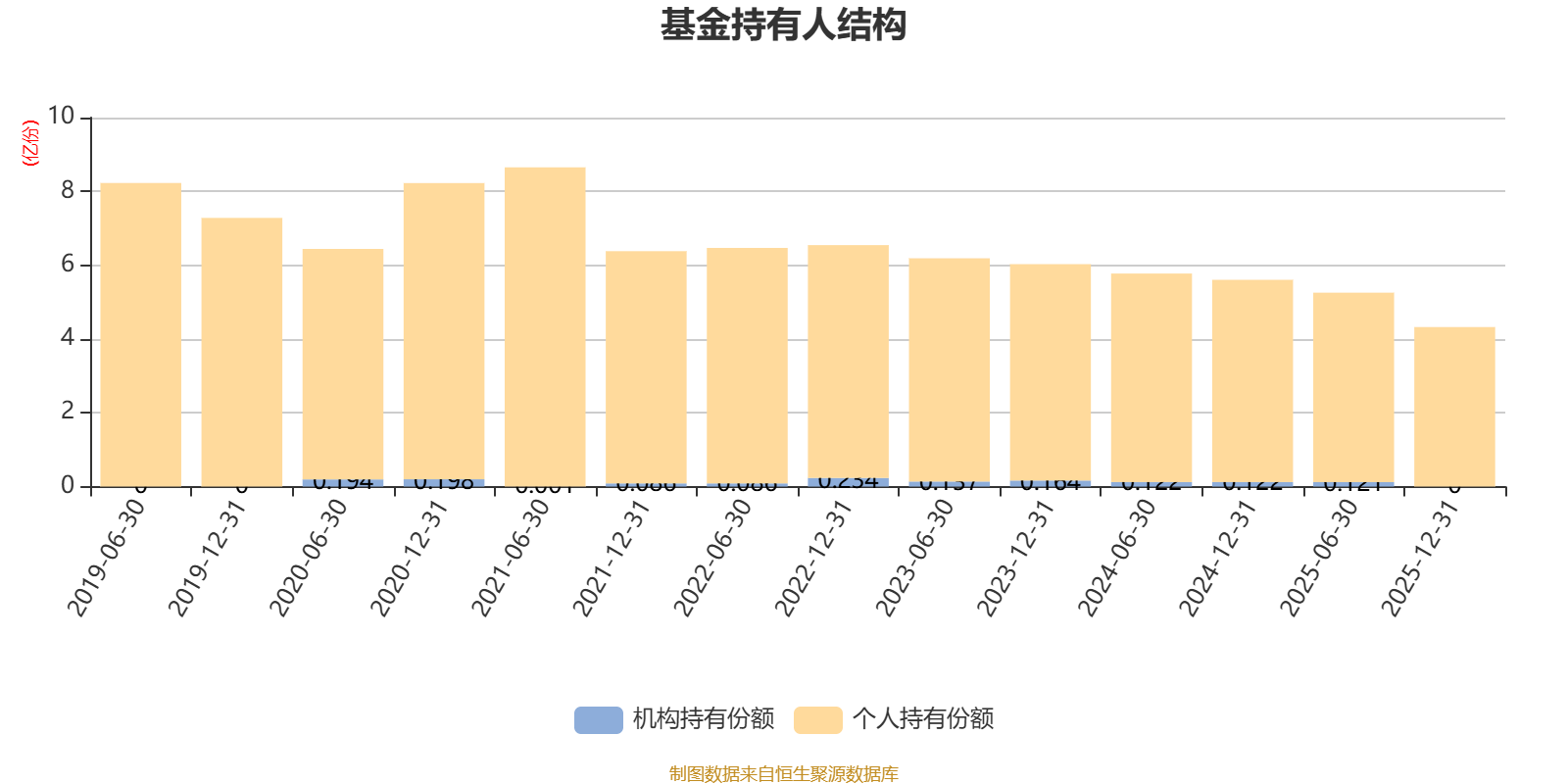 截至2025年12月31日,基金持有人共计3.48万户,合计持有4.32亿份。其中管理人员工持有6.73万份,占比0.02%,机构持有份额占比0.00%,个人投资者占比100.00%。