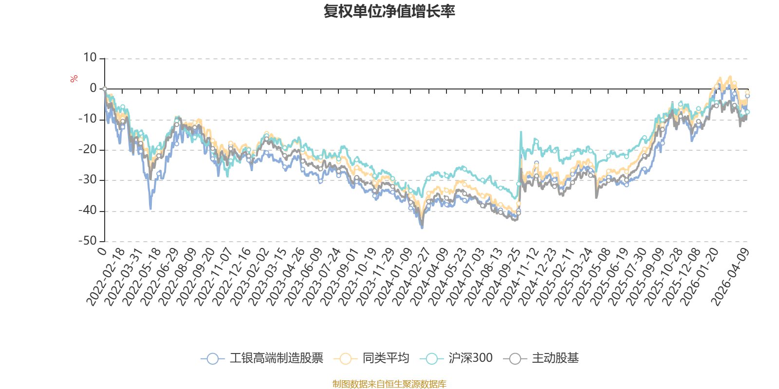 截至4月9日,工银高端制造股票近三个月复权单位净值增长率为0.71%,位于同类可比基金52/167;近半年复权单位净值增长率为1.87%,位于同类可比基金88/167;近一年复权单位净值增长率为45.01%,位于同类可比基金74/165;近三年复权单位净值增长率为25.07%,位于同类可比基金62/157。