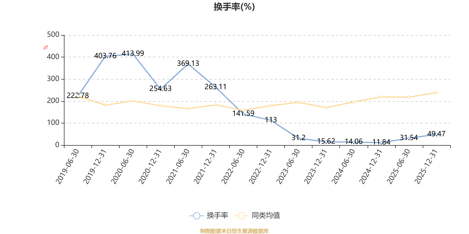 截至2025年12月31日,基金最近一年换手率约81.12%,持续4年低于同类均值。