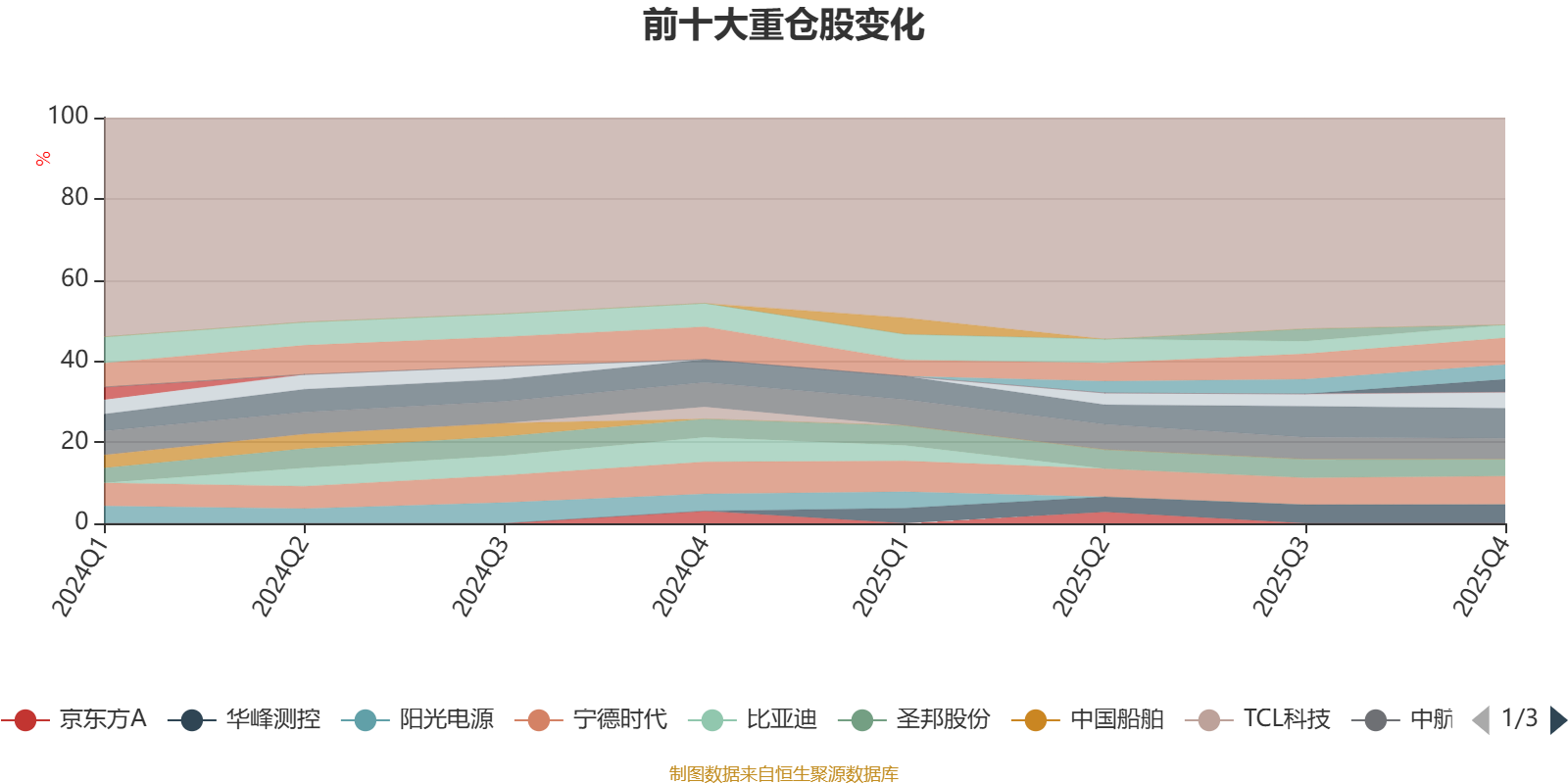 且持股标的较为稳定。截至2025年末,基金十大重仓股分别是立讯精密、宁德时代、中微公司、中航光电、华峰测控、圣邦股份、华鲁恒升、华海清科、中国汽研、中科飞测。