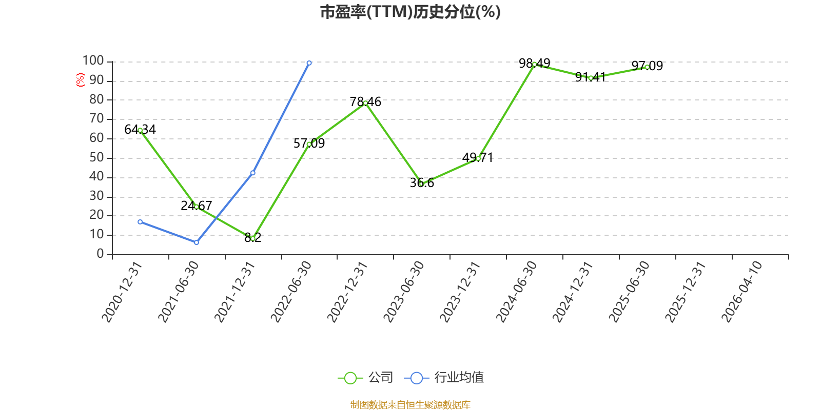 市盈率、市净率为负时,不显示当期分位数,会导致折线图中断。