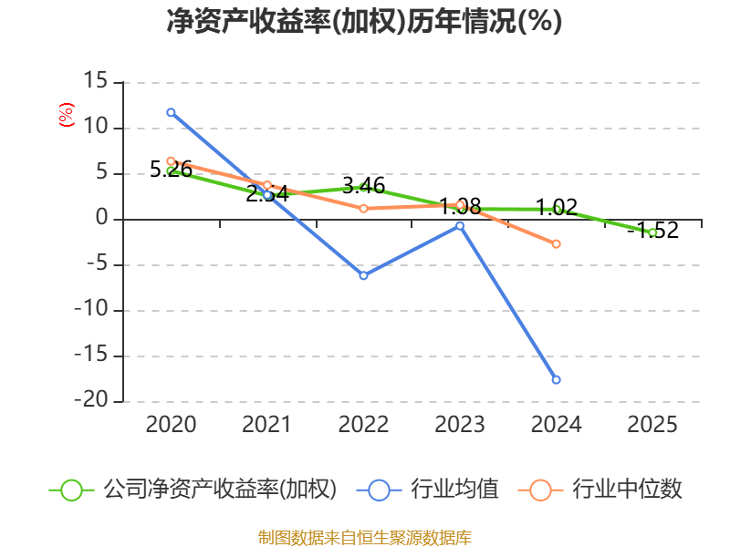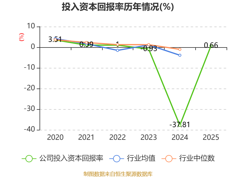 数据显示,2025年公司加权平均净资产收益率为-1.52%,较上年同期下降2.54个百分点。公司2025年投入资本回报率为0.66%,较上年同期上升38.47个百分点。