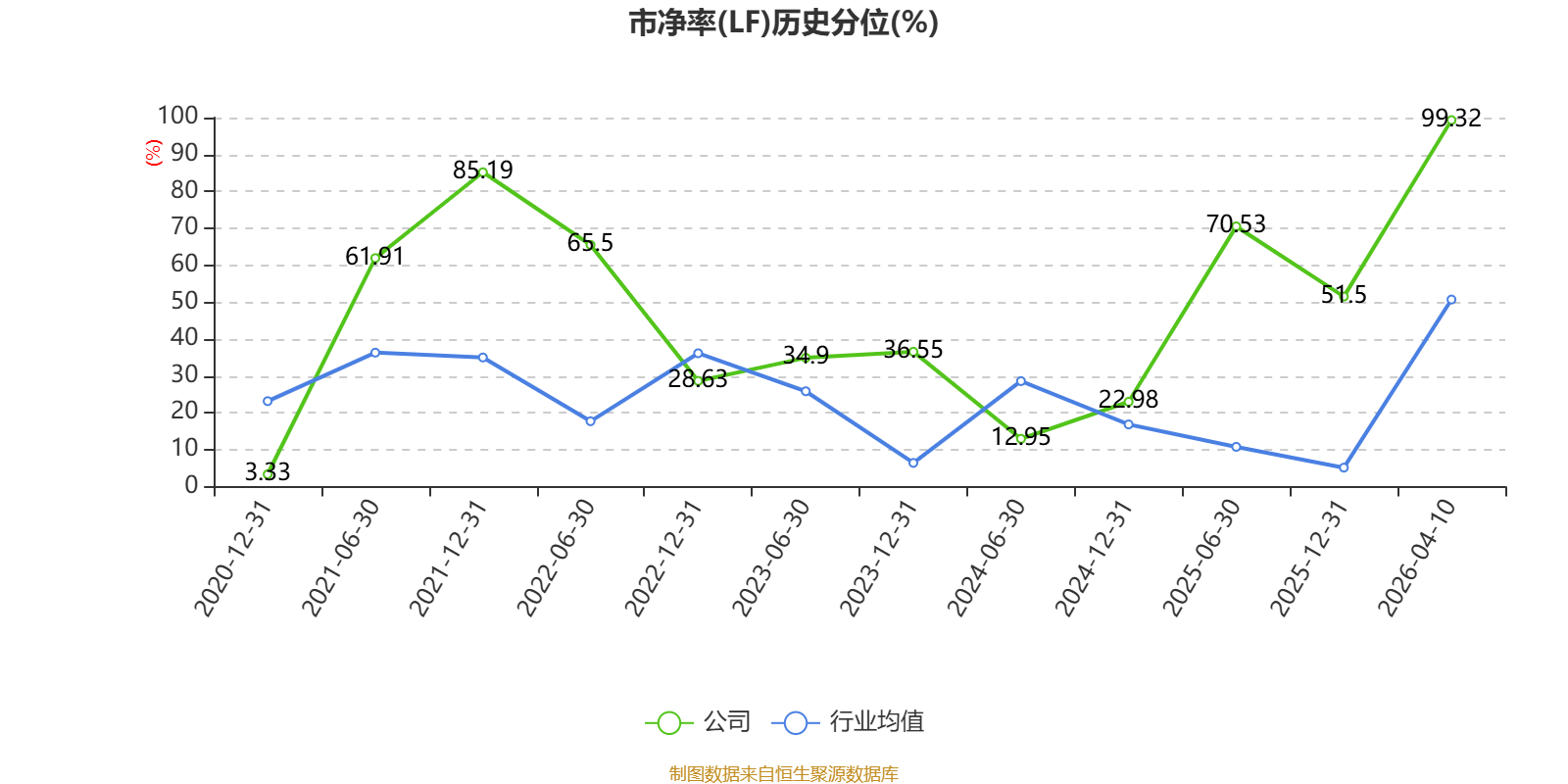 市盈率、市净率为负时,不显示当期分位数,会导致折线图中断。