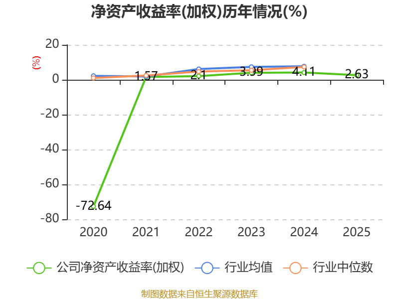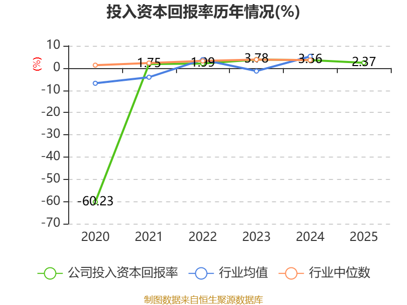 数据显示,2025年公司加权平均净资产收益率为2.63%,较上年同期下降1.48个百分点。公司2025年投入资本回报率为2.37%,较上年同期下降1.19个百分点。