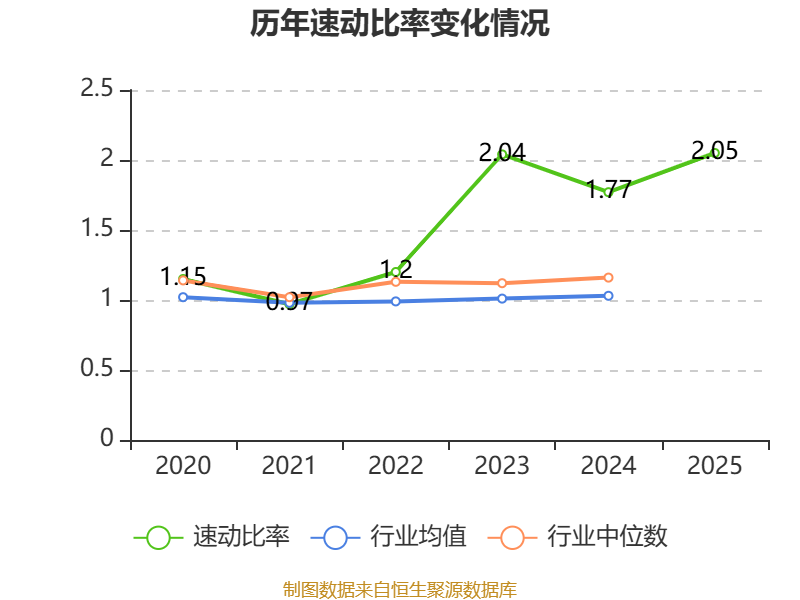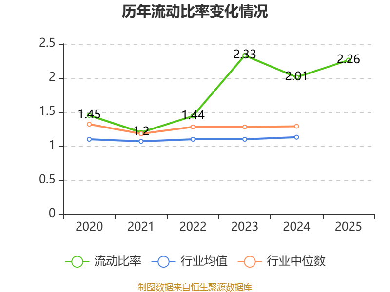 2025年,公司流动比率为2.26,速动比率为2.05。