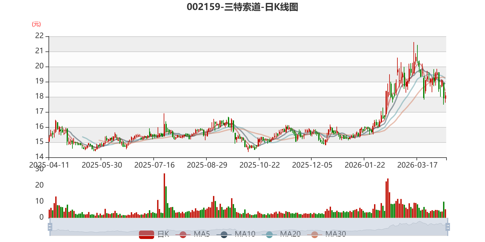 值得注意的是,中登公司数据显示,截至2026年4月3日,三特索道21.79%股份处于质押状态。年报显示,第一大股东武汉当代城市建设发展有限公司质押3863万股公司股份,占其全部持股的99.99%。