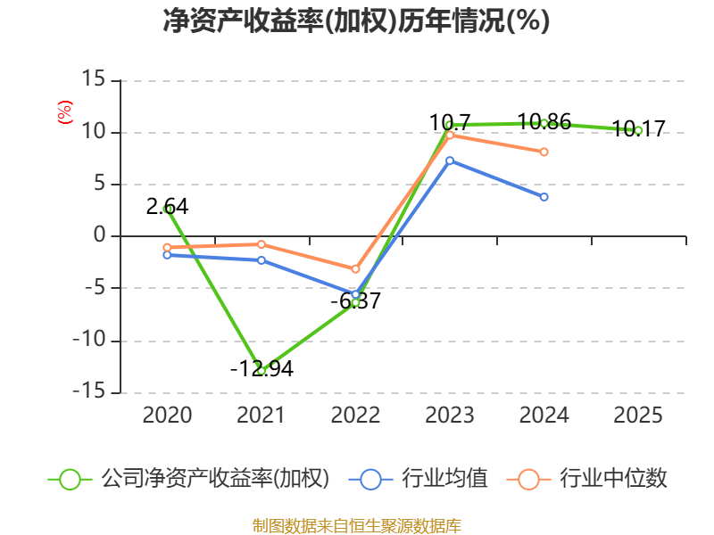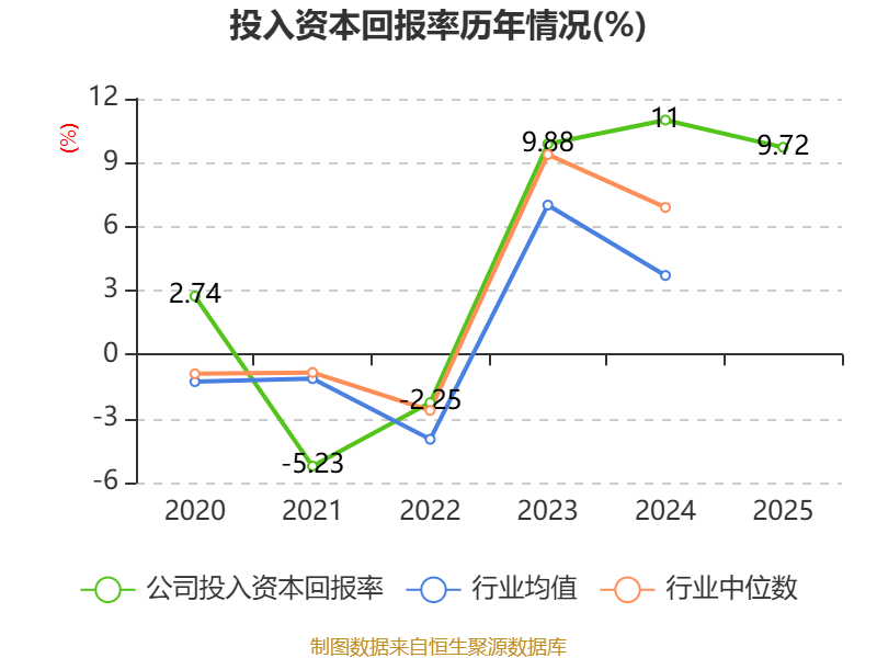 数据显示,2025年公司加权平均净资产收益率为10.17%,较上年同期下降0.69个百分点。公司2025年投入资本回报率为9.72%,较上年同期下降1.28个百分点。