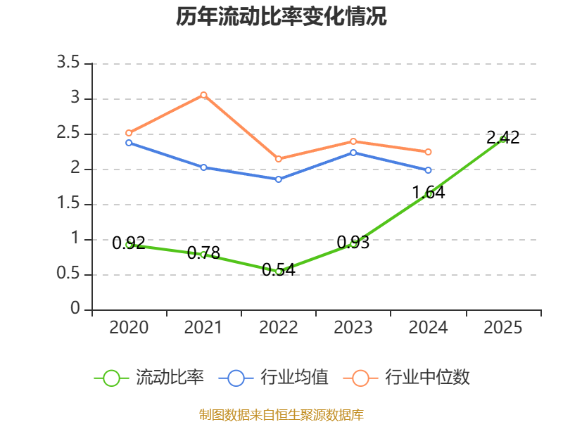 2025年,公司流动比率为2.42,速动比率为2.37。