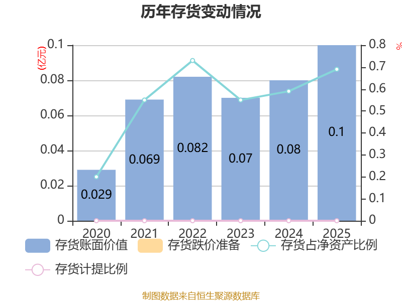 从存货变动来看,截至2025年末,公司存货账面价值为1003.97万元,占净资产的0.69%,较上年末增加204.33万元。公司本期没有计提存货跌价准备。